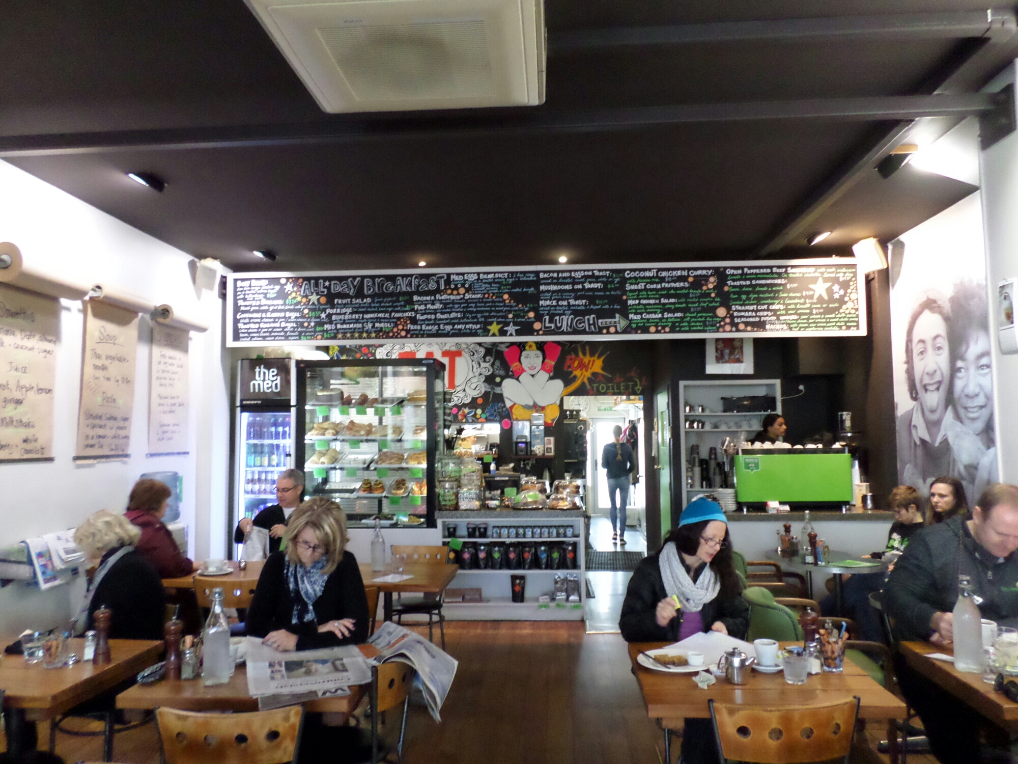 After having a bit of a blue day yesterday, I decided to start off the day with some pleasant activities. First I watched the sunrise while enjoying a cup of peppermint tea, then I treated myself to a hot breakfast. The Med Cafe was just around the corner and it was awesome. My mocha came with a little piece of chocolate and I stashed it away for later.