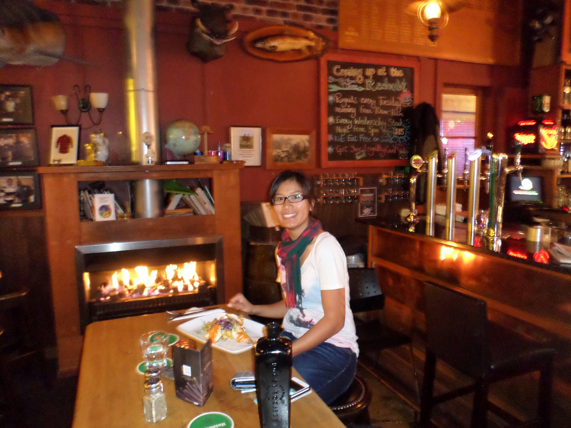 I was pretty tired when I got back to my hotel. Yes, I’m not in a hostel this time, it’s the first non-bunk bed I’ve slept in so far. I had a power nap then headed to the Redoubt Bar and Eatery for dinner. The food was amazing (tiramisu for dessert too) and a spot right next to the fireplace was so nice.