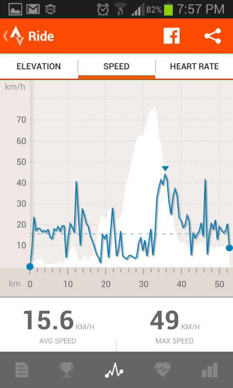 The speed graph is the best one to explain how things really went. There was a strong westerly wind (35-40km/hr) and for the first 10km I was high on caffeine and happiness, so I found it amusing. I applied a generous amount of lip balm and wore a windbreaker, assuming the headwind would ease up as I went inland. At the 12km mark I saw the most beautiful scenery as I descended from a huge hill (sorry for no pics, I was too mesmerised to do anything but stare at the perfect landscape). That was the last happy part of the ride, at least for the next two hours.