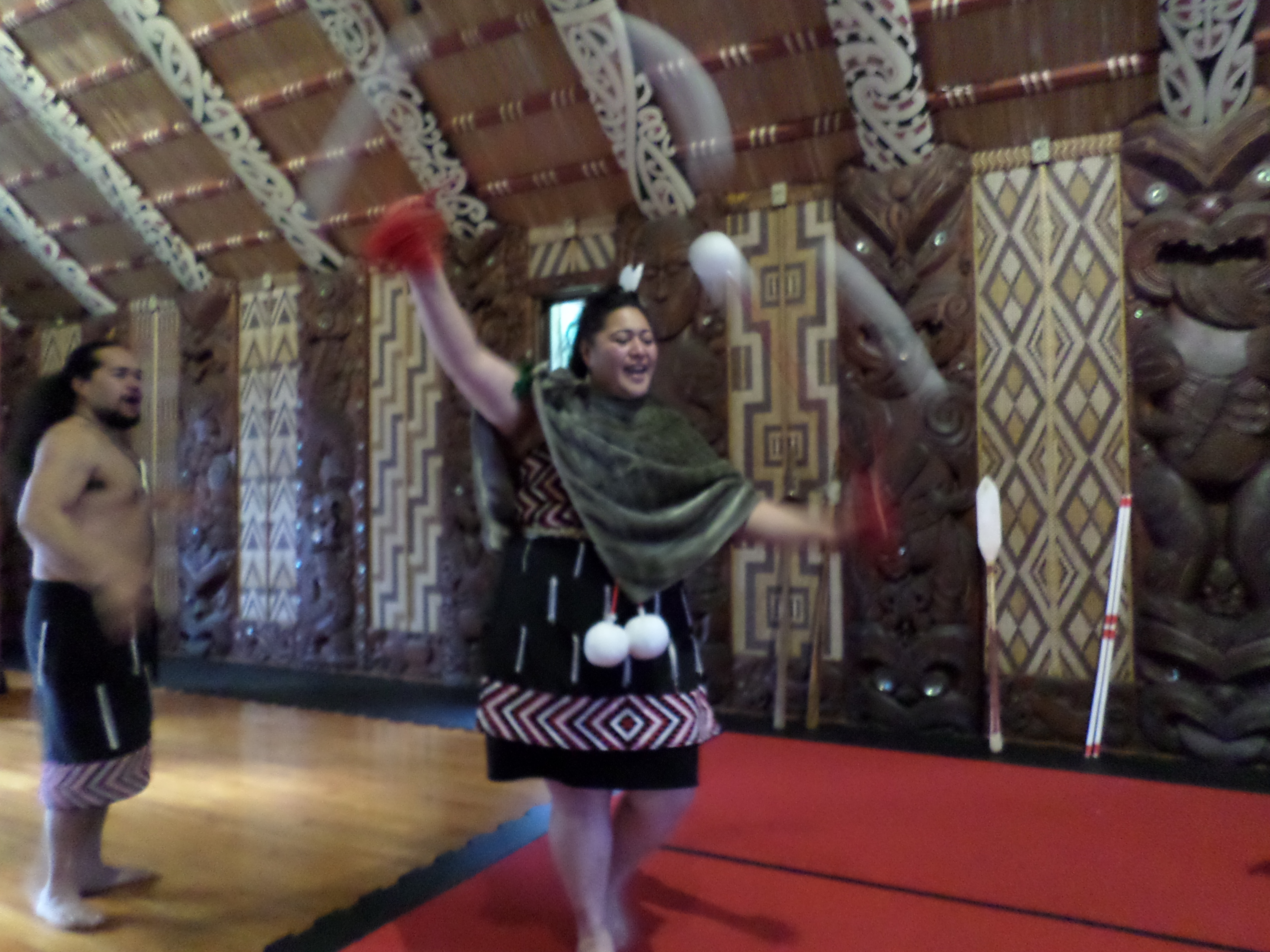 After safely landing and having a light lunch, I headed Waitangi Treaty Grounds to absorb some history and more idyllic scenery. The site is significant because in 1840, it is where the Maori tribes and the British signed the Waitangi Treaty, which outlined topics such as land ownership and citizen rights. Since there was an English copy and a Maori copy, there are some disagreements about its interpretation, so the Waitangi Tribunal is used to resolve disputes. There was heaps of interesting stuff in the museum, but my favourite part was the cultural show in the carved meeting house. We were greeted with music, singing and displays of instruments and weapons.