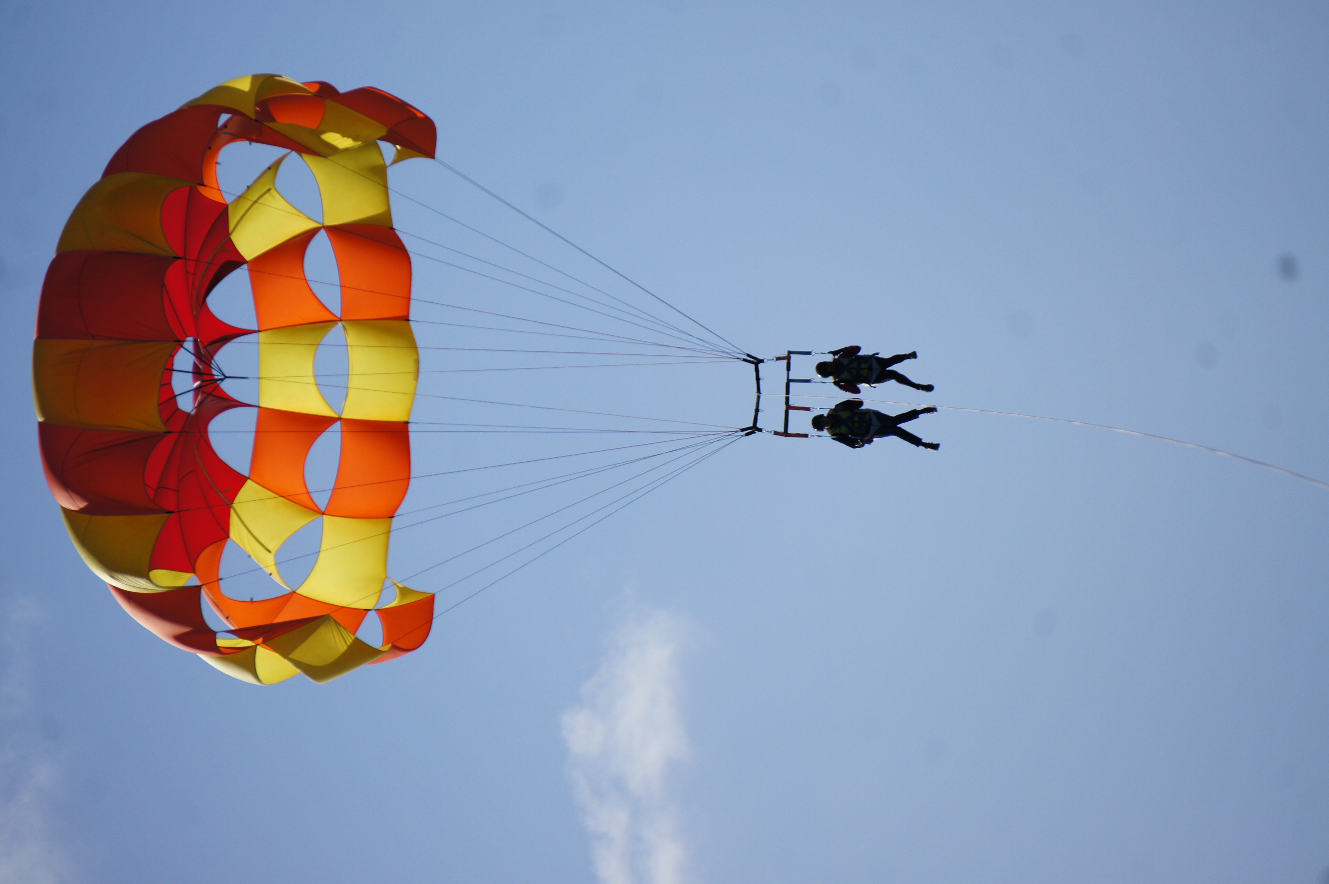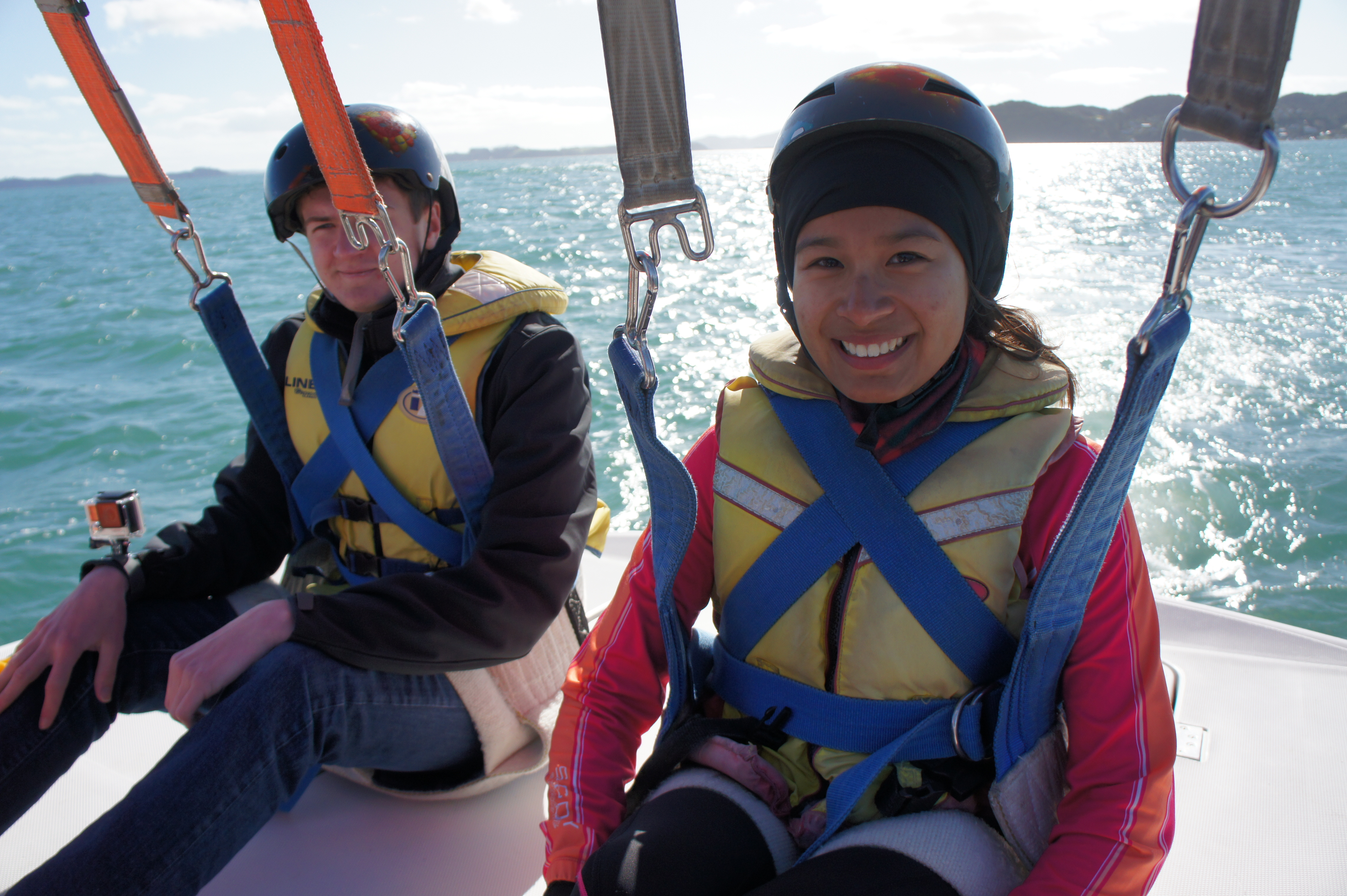 I tried out parasailing in Paihia today and it was awesome. It was a bit windy, so paired up with Cameron, who is campervanning around NZ with his uni friends. A sixty year old couple went before us and didn’t look remotely scared, which was reassuring. Until we got clipped into the giant parachute and shot up 400m into the sky.