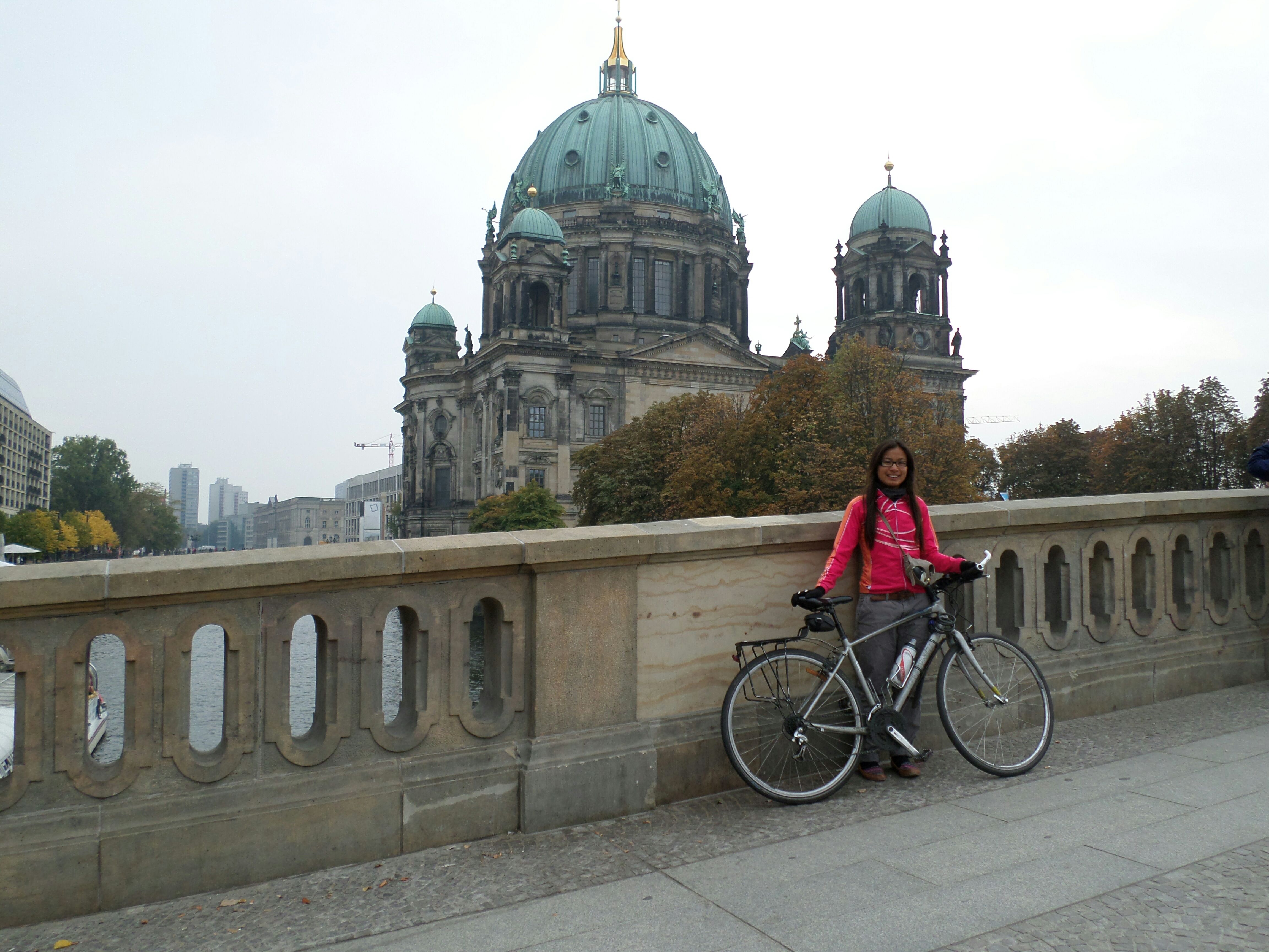 The bus ride was a bit boring, as it was very foggy and I couldn’t really see anything. Once I arrived at the bus station, the sun came out and I cycled half an hour to the city centre, along generously wide and familiar roads. I was staying with Leonie, a cycle tourer I met in Novo Mesto, Slovenia, where she was cycling to Venice with her boyfriend. Her apartment was right next to the Berlin Wall, on the east side, and we walked to a park nearby to see parts of the original wall. There was plenty of information about its history and photos showing how different things were a few decades ago.