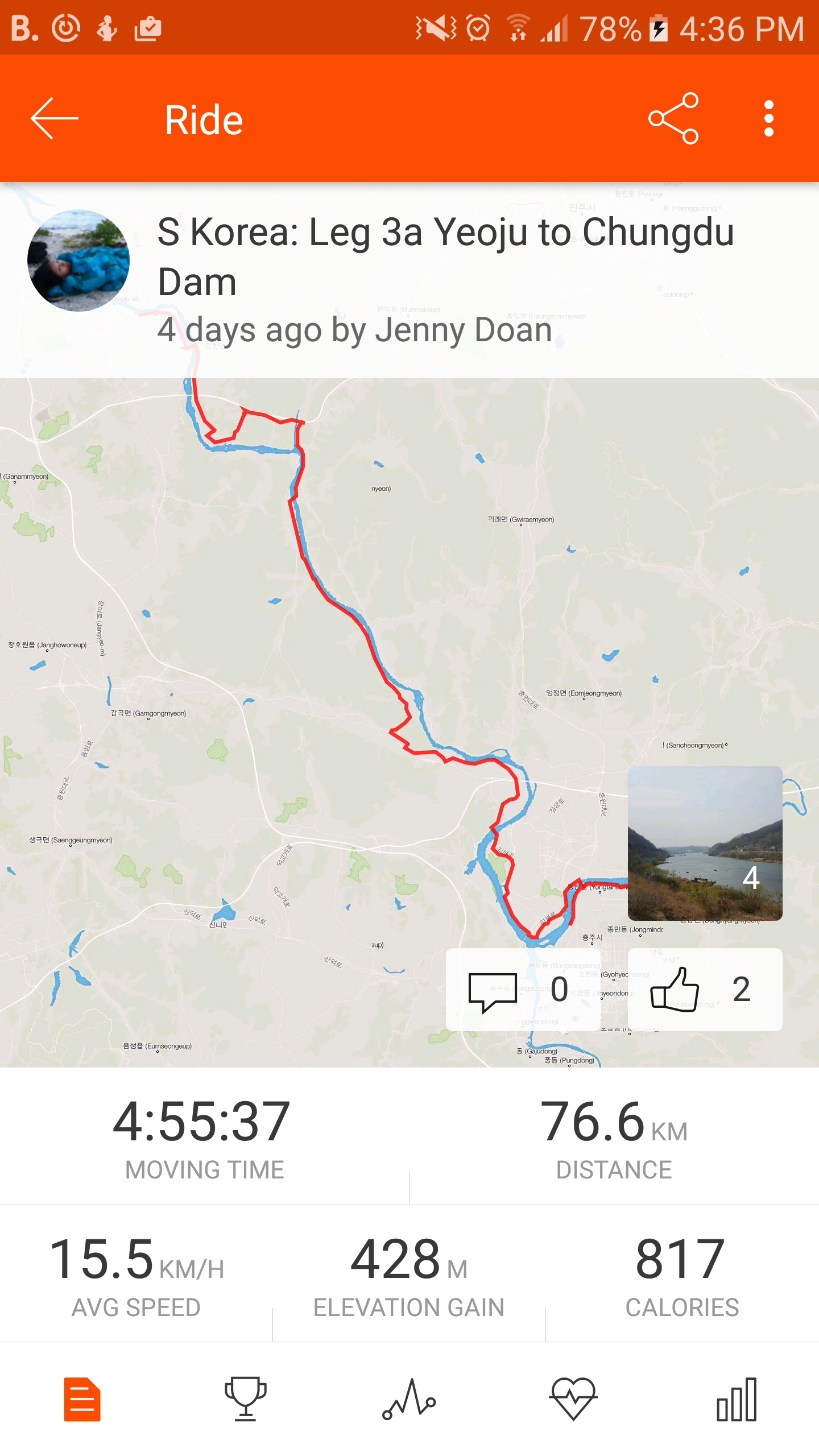 Today’s ride was around 100km and I chose the Suanbo Hot Springs as my destination, so I could have a warm bath at the end of the day. It was mostly flat in the beginning but towards the end there was a bit of headwind and some minor bumps, so I was still a tad slow.
