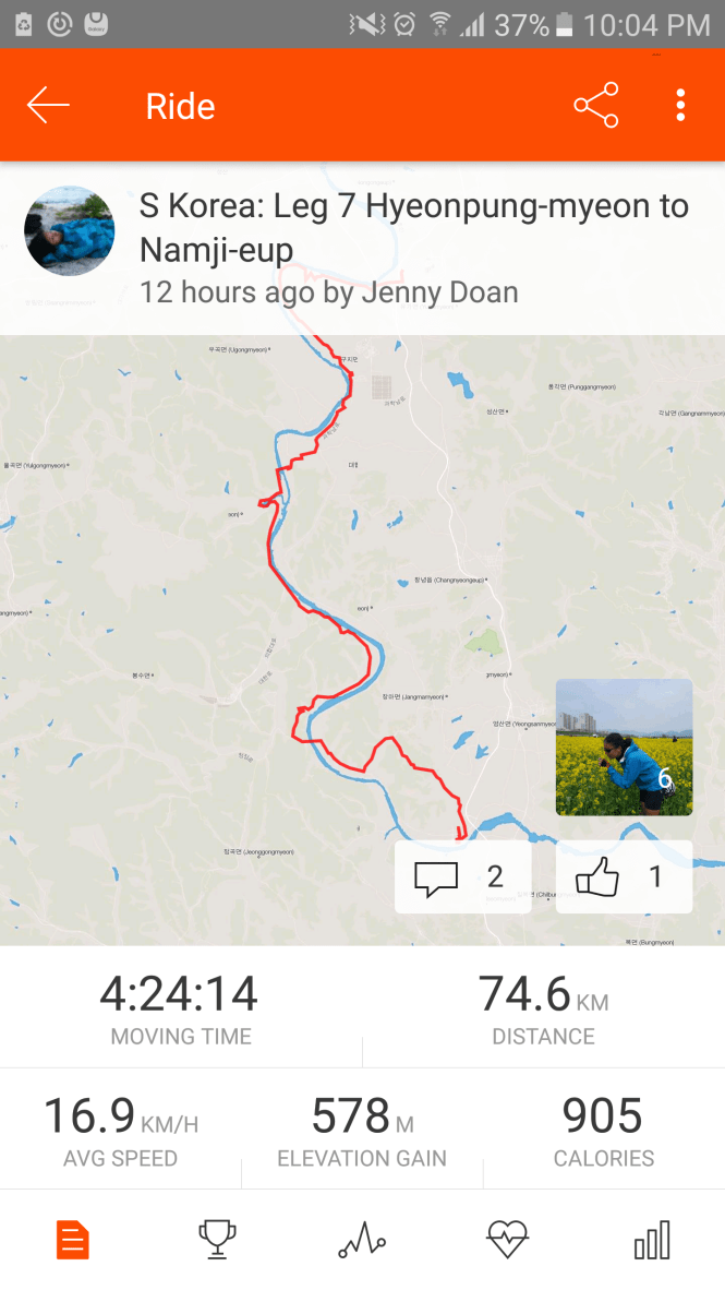 As we snaked along the river, we had bursts of tailwind to get us above 25km/hr, but there were two major climbs where he helped me push my bike. Like a lot of other cyclists, he had a speaker playing Korean music, with the odd 80s American pop song, to keep us entertained for the day.
