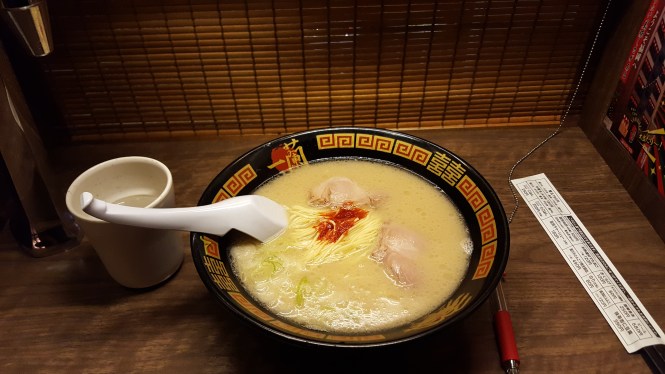 Lunch time came around and I tried out one of the restaurant chains called Ichiran, which specialises in tonkotsu ramen, the specialty of Fukuoka. The ordering system is called izakaya, where you order and pay at a vending machine, get a ticket, pick a seat and give your ticket to a waiter. I chose the counter section, where you get a little booth to yourself and once your food comes out, the little curtain comes down and you can eat in peace. It was the ideal setting for an introvert to quietly enjoy a delicious meal and the restaurant filled up quickly.